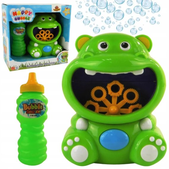 Maszynka do robienia baniek mydlanych dla dzieci automat zielony hipopotam płyn zabawa śmiech