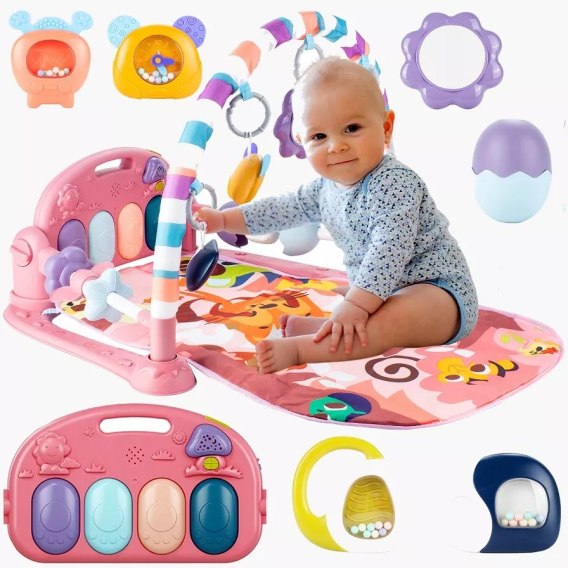 • Mata edukacyjna z pianinkiem grzechotki gryzaki interaktywna dla niemowląt