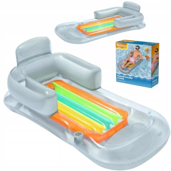Materac do pływania firmy Bestway to idealne rozwiązanie na letni wypoczynek nad morzem, jeziorem w basenie czy we własnym ogrodzie. Dmuchany materac wykonany jest z wytrzymałego materiału PCV, który posłuży przez klika lat. Charakterystyczną cechą nadmuchiwanego materaca jest wygodne oparcie na plecy, ramiona oraz głowę. Dodatkowo materac wyposażony został w specjalne miejsca na kubek lub butelkę, dzięki czemu napój zawszę będzie pod ręką. Materac do pływania to wspaniała propozycja dla osób ceniących wygodę i relaks na świeżym powietrzu.