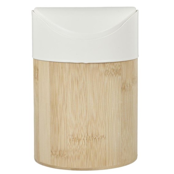 Mini kosz z drewna bambusowego to idealny pojemnik służący jako kompostownik lub na odpady organiczne w kuchni. Mini kosz wyposażony w obrotową pokrywę sprawdzi się podczas przysządzania dań jak i również będzie idealnym mini pojemnikiem na odpady np. w łazience lub w biurze. Pojemnośc 1 litr. Pokrywa z tworzywa sztucznego. Korpus drewno bambusowe.