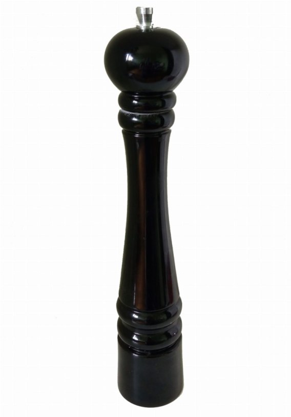Młynek do pieprzu soli mechanizm stalowy Młynek  wykonany z drewna bukowego, wyposażony w stalowy mechanizm mielący. drewno bukowe stalowy mechanizm mielący lakier z wysoki połysk odporny na ścieranie kolor czarny Wymiary: wysokość 25 cm średnica 6 cm