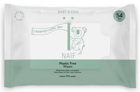 Chusteczki nawilżane Naïf Baby Wipes są pozbawione plastiku oraz wykonane są one z włókien eukaliptusa. Jest to produkt stuprocentowo biodegradowalny w ciągu 8-19 tygodni, a co za tym idzie to idealny wybór dla tych dbających zarówno o innych ludzi jak i o naszą planetę. Opakowanie zrobione jest z bioplastiku, wytworzonego z trzciny cukrowej. Użyty do wykonania chusteczek lotion nasączony jest w 99% wodą, ponadto nie zawiera ani alkoholu ani perfum.