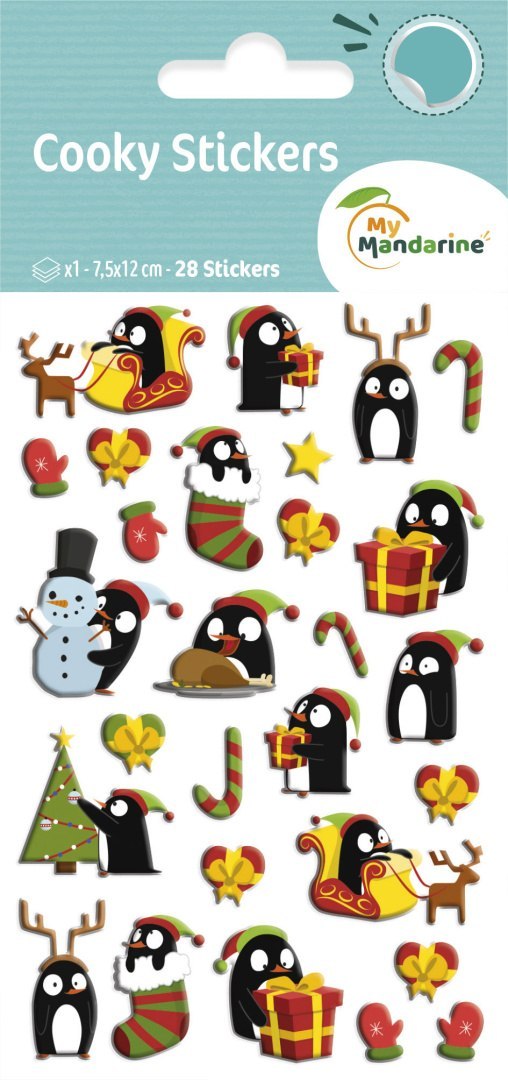 Naklejki 3D wypukłe Pingwiny w Święta