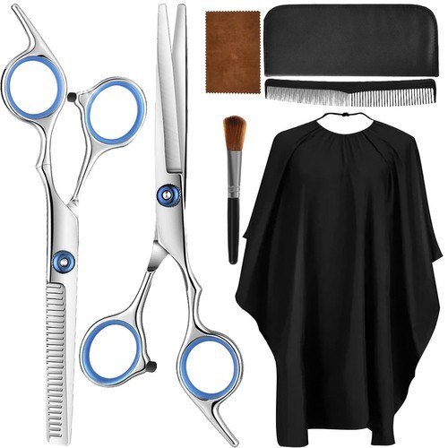 - DUŻY ZESTAW - cały zestaw zawiera 7 elementów. Jest w nim peleryna fryzjerka, która ochroni ubranie przed pobrudzeniem podczas zabiegów fryzjerskich. 2 pary nożyczek. Jest także grzebień, pędzel i ściereczka do czyszczenia nożyczek. Całość bardzo przydatna w trakcie strzyżenia oraz innych zabiegów fryszerskich.