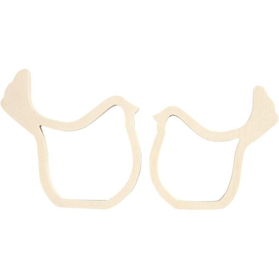 Ptaszki ze sklejki - obrys. Można je postawić lub zawiesić na sznurku. Idealne do pomalowania farbami akrylowymi, ozdobienia techniką decoupage lub obklejenia masami plastycznymi, papierem, włóczką itp. Wielbiciele naturalnego drewna mogą po prostu postawić na półce i cieszyć się ozdobą mieszkania. Rewelacyjny element wystroju na Wielkanocne spotkanie, jak również urocza wiosenna dekoracja. Nieodpowiednie dla dzieci w wieku poniżej 36 miesięcy. Wymiary większego około: 9x10x1,1 cm, wymiary mniejszego około: 8,5x9x1,1 cm. Made in China.