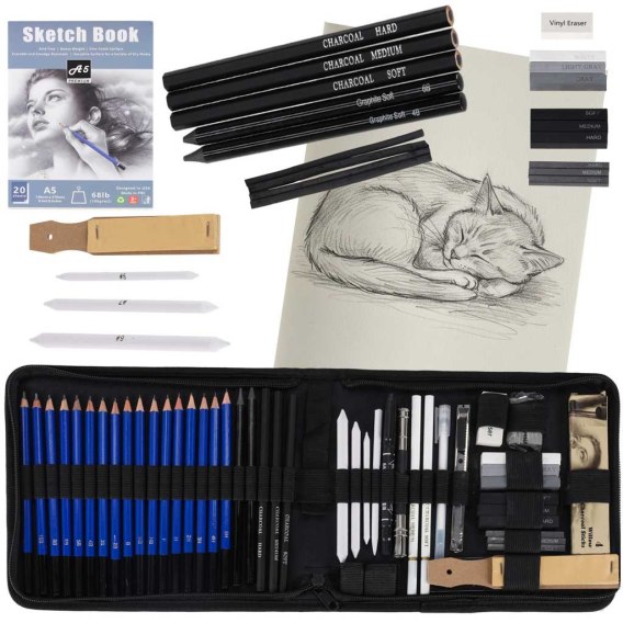 Zestaw wspiera płynną pracę w różnych stylach. Oprócz grafitu i węgla znajdziesz sztyfty, żelopis i akcesoria do rozmazywania, które ułatwiają tworzenie subtelnych efektów. To idealny wybór dla osób ceniących porządek i wygodę w jednym miejscu.