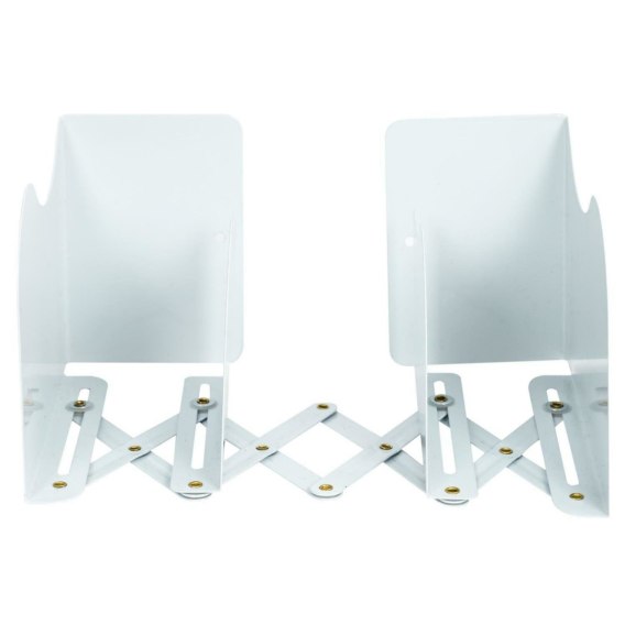 Uniwersalny organizer o regulowanej szerokości sprawdzi się w biurze na segregatory lub książki lub w domowej biblioteczce. Organizer wyposażony został w dwie ścianki oraz dodatkowe dwie przegródki, które pozwolą na segregację książek lub segregatorów. Organizer o regulowanej szerokości wykonany został z metalu pomalowanego na biało.