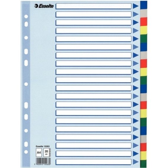 PRZEKŁADKI PLASTIKOWE 20 KARTEK ESSELTE PP A4 KOLOROWE
