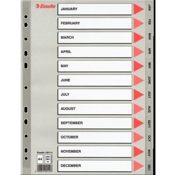 PRZEKŁADKI PLASTIKOWE ESSELTE PP A4 12 MIESIĘCY