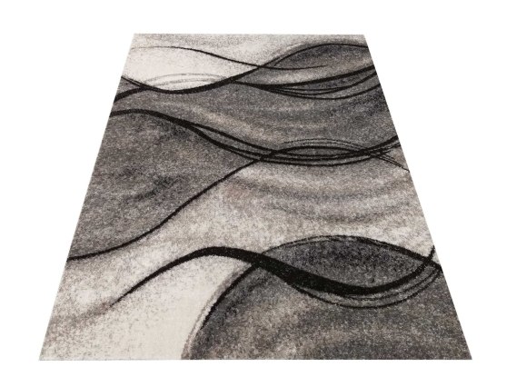 Dywan Panamero z oryginalnym wzorem w fale udekoruje każde nowoczesne wnętrze. Produkt ten wykonany został z najwyższej jakości przędzy polipropylenowej, która charakteryzuje się trwałością, odpornością na ścieranie oraz trwałością kolorów. Piękne odcienie szarości świetnie podkreślą nowoczesną, jak i klasyczną aranżację, a geometryczne, nietuzinkowe wzornictwo oczaruje każdego. Wykonany z dbałością o najmniejszy szczegół. Waga - 1900g/m2.