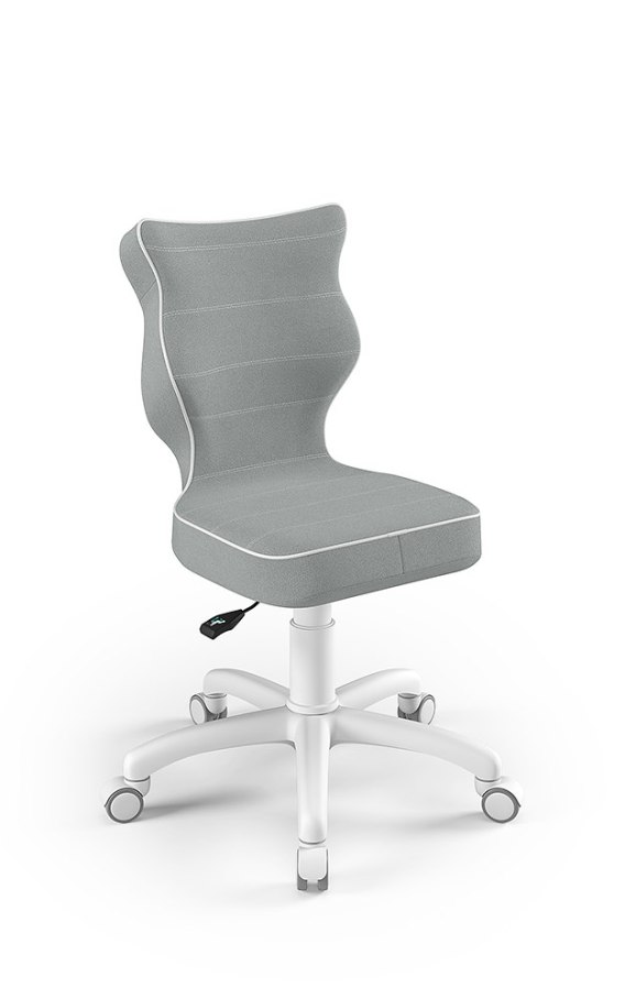 Tworzymy tylko zdrowe krzesła! Liczne badania potwierdzają, że około 70% dzieci w wieku szkolnym posiada błędy lub wady postawy. Dobre Krzesła dostosowane są do wzrostu użytkownika i występują w 4 rozmiarach. Pamiętaj aby odpowiednio dopasować rozmiar krzesła do wzrostu dziecka. Czym są Dobre Krzesła? Dobre Krzesła to linia produktów ergonomicznych, które dzięki posiadanym parametrom oraz najwyższym standardom w zakresie ergonomii sprzyjają wyrabianiu prawidłowej pozycji siedzącej, a w konsekwencji wspomagają prawidłowy rozwój kręgosłupa. Krzesła poprzez wyprofilowanie lordozy lędźwiowej wymuszają obciążenie guzów kulszowych, stymulują prawidłową pozycję miednicy, która jest podstawą właściwego ustawienia górnych segmentów kręgosłupa. Dobre Krzesła zostały zaprojektowane zgodnie z Normą PN-EN 1729 dzięki czemu posiadają rozmiary dedykowane do wzrostu użytkownika. Sprawia to, że w przypadku najmłodszych krzesła mogą „rosnąć" razem z nimi. Krzesło dziecięce Petit Petit to kolekcja krzeseł dziecięcych o ergonomicznym kształcie siedziska dostosowanym do wzrostu użytkownika. Petit występuje w sześciu rodzajach tkanin, do których został przypisany określony sposób wykończenia krzesła. Model dostępny w dwóch rozmiarach i w trzech kolorach komponentów - czarnym, białym oraz szarym. Podstawę krzesła wykonano z tworzywa sztucznego i włókna szklanego. W zestawie znajdują się kółka miękkie umożliwiające ruch krzesła zarówno po powierzchniach twardych jak i wykładzinach. Produkt zaprojektowany i wyprodukowany w Polsce. Specyfikacja tkaniny Jasmine Kolorystyka: czarny, szary, niebieski, różowy, ciemny szary Kolor przeszyć: biały Kolor lamówki: biały Gramatura: 250 g/m2 Skład: 100% poliester Ścieralność: 100 000 cykli Tkanina przeszła test zapalności zgodnie z Normą EN1021-1 Jak dobrać odpowiedni rozmiar krzesła do wzrostu dziecka? Kręgosłup jako główny stabilizator ciała wymaga wsparcia w okresie dojrzewania, kiedy rośniemy i się rozwijamy. Mając 130 cm wzrostu poszczególne odcinki kręgosłupa znajdują się na innej wysokości niż w momencie kiedy osiągniemy 170 cm wzrostu. Z punktu ergonomii jest to niezwykle ważne, aby krzesło było odpowiednio dopasowane do wzrostu dziecka czy dorosłego. Rozmiary Dobrych Krzeseł są zaprojektowane w taki sposób, aby na każdym etapie rozwoju wspierały kręgosłup poprzez zachowanie krzywizn i uwypukleń , które odzwierciadlają naturalne ułożenie kręgosłupa. Certyfikaty i atesty Tworzenie nowoczesnych przestrzeni i wnętrz to tworzenie przestrzeni bezpiecznych. W tym celu konieczne jest zastosowanie wyposażenia, które nie tylko nie zagraża zdrowiu użytkowników, lecz aktywnie bądź pasywnie wspomaga funkcje ochronne. Produkty przedstawione w naszej ofercie są zaprojektowane zgodnie z powyższą ideą. Produkt posiada certyfikat zgodności z Normą PN-EN 1335-1:2004 oraz PN-EN 1729-1:2007. Szczegóły Siedzisko Ergonomiczne siedzisko wykonane z tworzywa sztucznego Mechanizm Blacha siedziska z dźwignią prostą wykonana ze stali Kolumna Podnośnik gazowy wykonany ze stali i tworzywa sztucznego Zgodność z Normą DIN 4550 Osłonka Teleskopowa osłonka na podnośnik gazowy wykonana z tworzywa sztucznego Baza Podstawa pięcioramienna wykonana z tworzywa sztucznego i włókna szklanego Kółka Kółka miękkie wykonane z tworzywa sztucznego, średnica 50 mm, średnica trzpienia fi 11