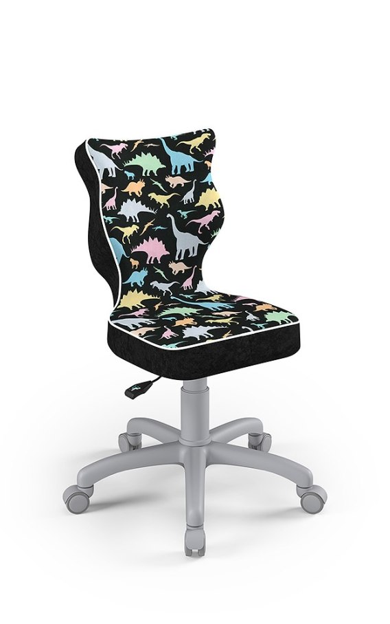 Tworzymy tylko zdrowe krzesła! Liczne badania potwierdzają, że około 70% dzieci w wieku szkolnym posiada błędy lub wady postawy. Dobre Krzesła dostosowane są do wzrostu użytkownika i występują w 4 rozmiarach. Pamiętaj aby odpowiednio dopasować rozmiar krzesła do wzrostu dziecka. Czym są Dobre Krzesła? Dobre Krzesła to linia produktów ergonomicznych, które dzięki posiadanym parametrom oraz najwyższym standardom w zakresie ergonomii sprzyjają wyrabianiu prawidłowej pozycji siedzącej, a w konsekwencji wspomagają prawidłowy rozwój kręgosłupa. Krzesła poprzez wyprofilowanie lordozy lędźwiowej wymuszają obciążenie guzów kulszowych, stymulują prawidłową pozycję miednicy, która jest podstawą właściwego ustawienia górnych segmentów kręgosłupa. Dobre Krzesła zostały zaprojektowane zgodnie z Normą PN-EN 1729 dzięki czemu posiadają rozmiary dedykowane do wzrostu użytkownika. Sprawia to, że w przypadku najmłodszych krzesła mogą „rosnąć" razem z nimi. Krzesło dziecięce Petit Petit to kolekcja krzeseł dziecięcych o ergonomicznym kształcie siedziska dostosowanym do wzrostu użytkownika. Petit występuje w sześciu rodzajach tkanin, do których został przypisany określony sposób wykończenia krzesła. Model dostępny w dwóch rozmiarach i w trzech kolorach komponentów - czarnym, białym oraz szarym. Podstawę krzesła wykonano z tworzywa sztucznego i włókna szklanego. W zestawie znajdują się kółka miękkie umożliwiające ruch krzesła zarówno po powierzchniach twardych jak i wykładzinach. Produkt zaprojektowany i wyprodukowany w Polsce. Specyfikacja tkaniny Storia Motywy: zwierzaki, piłki, dinozaury, motylki, sówki, moro Kolor lamówki: biały Gramatura: 90 g/m2 Skład: 100% poliester Ścieralność: 25 000 cykli Jak dobrać odpowiedni rozmiar krzesła do wzrostu dziecka? Kręgosłup jako główny stabilizator ciała wymaga wsparcia w okresie dojrzewania, kiedy rośniemy i się rozwijamy. Mając 130 cm wzrostu poszczególne odcinki kręgosłupa znajdują się na innej wysokości niż w momencie kiedy osiągniemy 170 cm wzrostu. Z punktu ergonomii jest to niezwykle ważne, aby krzesło było odpowiednio dopasowane do wzrostu dziecka czy dorosłego. Rozmiary Dobrych Krzeseł są zaprojektowane w taki sposób, aby na każdym etapie rozwoju wspierały kręgosłup poprzez zachowanie krzywizn i uwypukleń , które odzwierciadlają naturalne ułożenie kręgosłupa. Certyfikaty i atesty Tworzenie nowoczesnych przestrzeni i wnętrz to tworzenie przestrzeni bezpiecznych. W tym celu konieczne jest zastosowanie wyposażenia, które nie tylko nie zagraża zdrowiu użytkowników, lecz aktywnie bądź pasywnie wspomaga funkcje ochronne. Produkty przedstawione w naszej ofercie są zaprojektowane zgodnie z powyższą ideą. Produkt posiada certyfikat zgodności z Normą PN-EN 1335-1:2004 oraz PN-EN 1729-1:2007. Szczegóły Siedzisko Ergonomiczne siedzisko wykonane z tworzywa sztucznego Mechanizm Blacha siedziska z dźwignią prostą wykonana ze stali Kolumna Podnośnik gazowy wykonany ze stali i tworzywa sztucznego Zgodność z Normą DIN 4550 Osłonka Teleskopowa osłonka na podnośnik gazowy wykonana z tworzywa sztucznego Baza Podstawa pięcioramienna wykonana z tworzywa sztucznego i włókna szklanego Kółka Kółka miękkie wykonane z tworzywa sztucznego, średnica 50 mm, średnica trzpienia fi 11