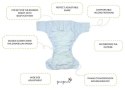 Rozmiar pieluchy jest regulowany za pomocą nap na długości oraz rzepa w pasie.