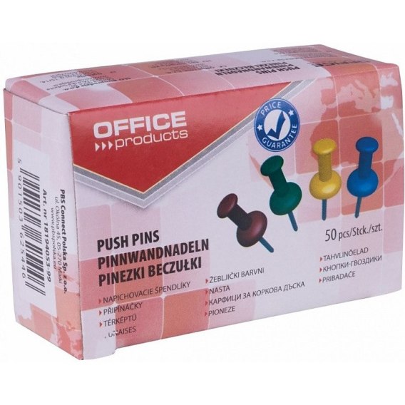 Pinezki beczułki OFFICE PRODUCTS, 50szt., mix kolo