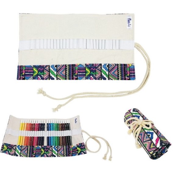 * piórnik zwijany uszyty z wytrzymałego, grubo tkanego materiału