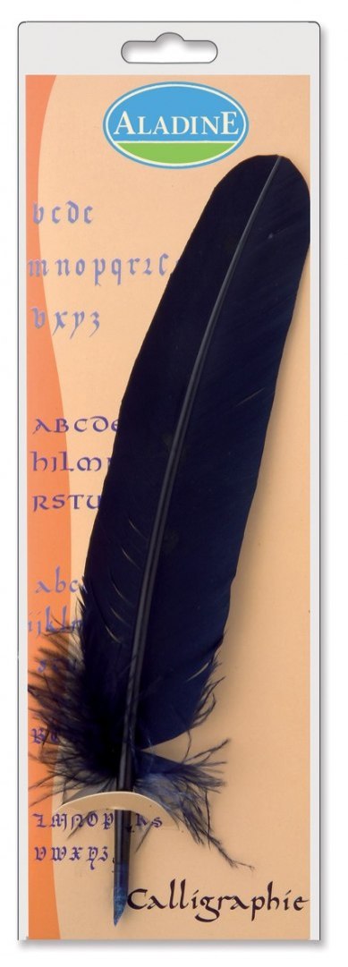 Pióro do kaligrafii bez stalówki. Prawdziwe ptasie pióro ze ściętą końcówką do maczania w kałamarzu. Występuje w kolorach białym, czarnym, zielonym, bordowym, czerwonym i granatowym - wysyłamy losowy kolor. Do pisania starodawną metodą. Nieodpowiednie dla dzieci w wieku poniżej 36 miesięcy. Wymiary opakowania 31,5x10,5 cm. Samo pióro ma długość około 20-24 cm.