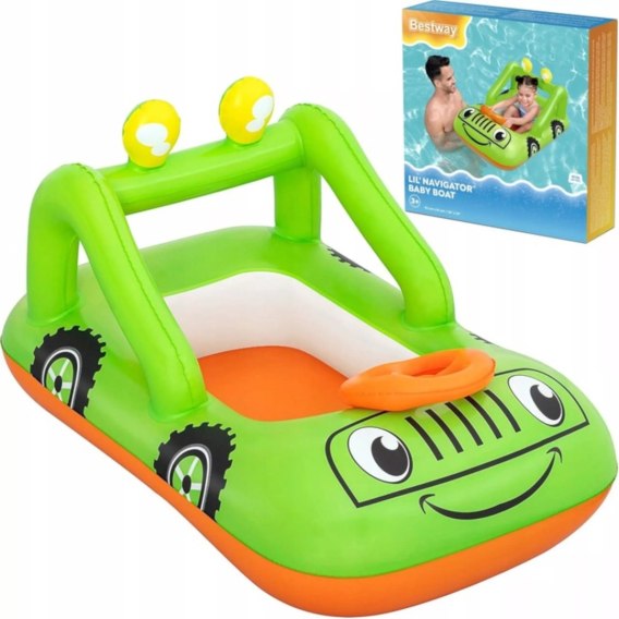 Ponton dla dzieci wzorem autka to idealne rozwiązanie dla osób chcących w bezpieczny sposób rozpocząć pierwszy kontakt z wodą swojego dziecka . Nadmuchiwana łódka dzięki lekkiej budowie zapewnia bezpieczeństwo i wygodę w wodzie. Dziecko może cieszyć się komfortową jazda po wodzie lub po prostu relaksować się. Charakterystyczną cechą łódki jest dmuchana kierownica znajdująca się z przodu dzięki której dziecko poczuje się jak prawdziwy kierowca.