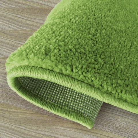 Jednokolorowy dywan w kształcie koła będzie pełnił rolę skromnej, ale bardzo efektownej ozdoby. Dywany z tej kolekcji cechują się brakiem wzorów, modną kolorystyką - piękna zieleń wpasuje się w każdy rodzaj wnętrza. Doskonała propozycja do każdego pomieszczenia. Runo dywanu o długości +/- 13 mm jest przyjemne w dotyku oraz odporne na wszelkiego rodzaju odbarwienia oraz odkształcenia. Ten nowoczesny dywan oczaruje każdego domownika, jak i gościa. Waga - 2400g/m2.