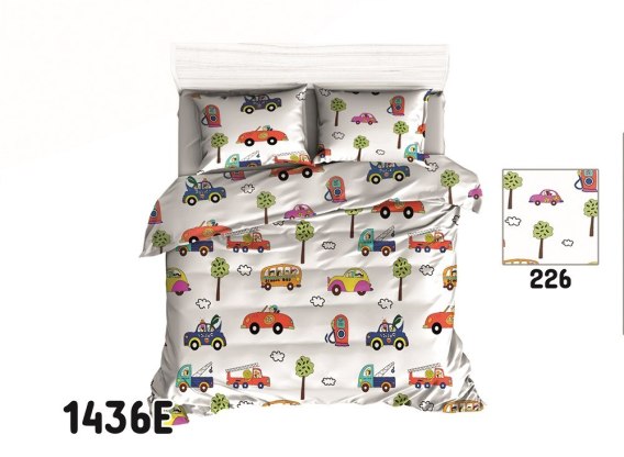 Pościel bawełniana 100x135 1436E biała Auta pojazdy policja straż pożarna 226N