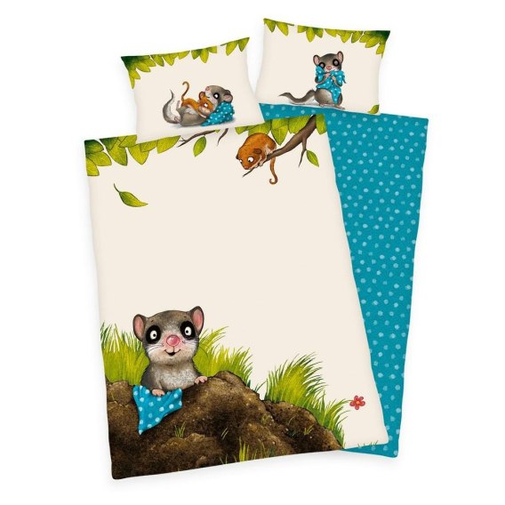 • Pościel bawełniana 100x135 Mała myszka kremowa turkusowa dziecięca do łóżeczka H23
