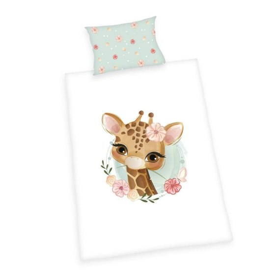 • Pościel bawełniana 100x135 Żyrafa biała zielona dziecięca do łóżeczka H23