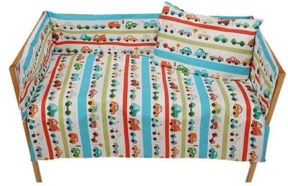 Pościel bawełniana 110x140 796E Auta samochody i pasy niebieskie i czerwone