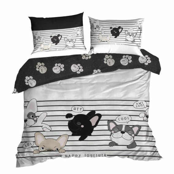 Pościel bawełniana 140x200 Kids 12 Pieski biała czarna młodzieżowa z jedną poszewką Design 91