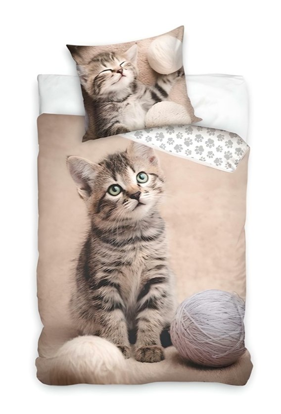 Pościel bawełniana 140x200 Kot kotki beżowa poszewka 70x90 C24