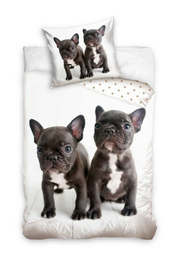 Pościel bawełniana 140x200 Psy Buldog francuski biała czarna poszewka 70x90 C24