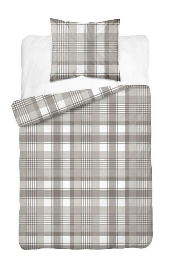 Pościel bawełniana 140x200 beżowa biała kratka 5246 B Bawełna 48