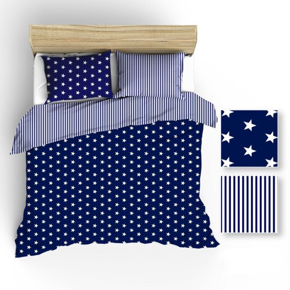 Pościel bawełniana 150x200 R006 biała granatowa gwiazdki paski 51N 52N 1 poszewka 50x60