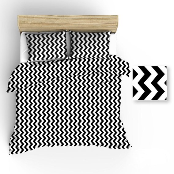 Pościel bawełniana 150x200 R018 biała zygzak czarny 60N 1 poszewka 50x60