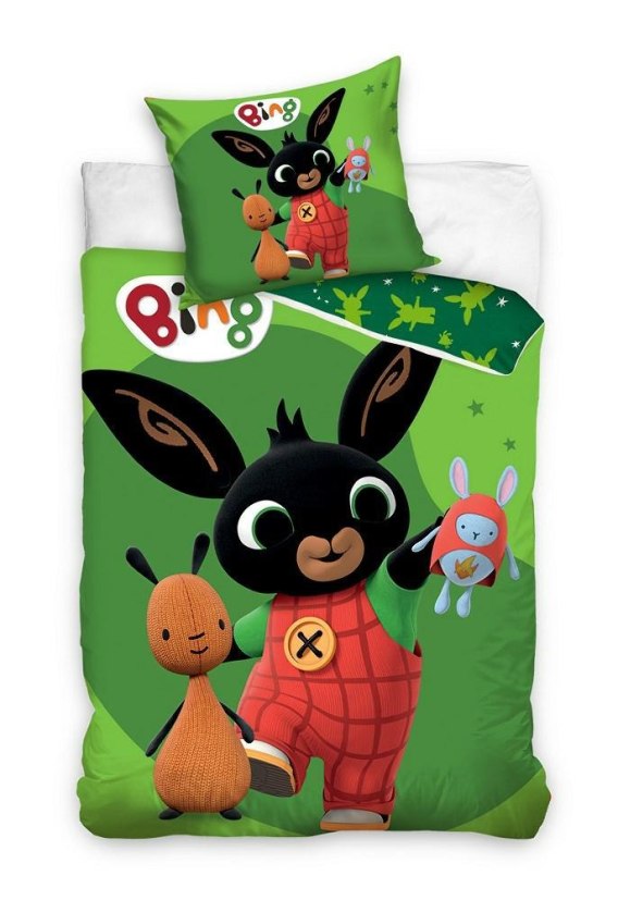 Pościel bawełniana 160x200 Bing królik zielona z jedną poszewką 70x80 C24