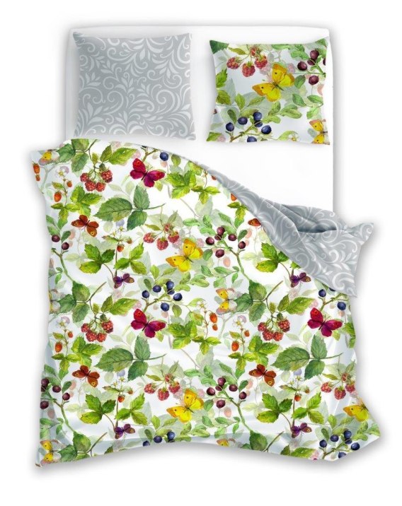 Pościel bawełniana 160x200 Cottage 007 liście owoce biała zielona Faro