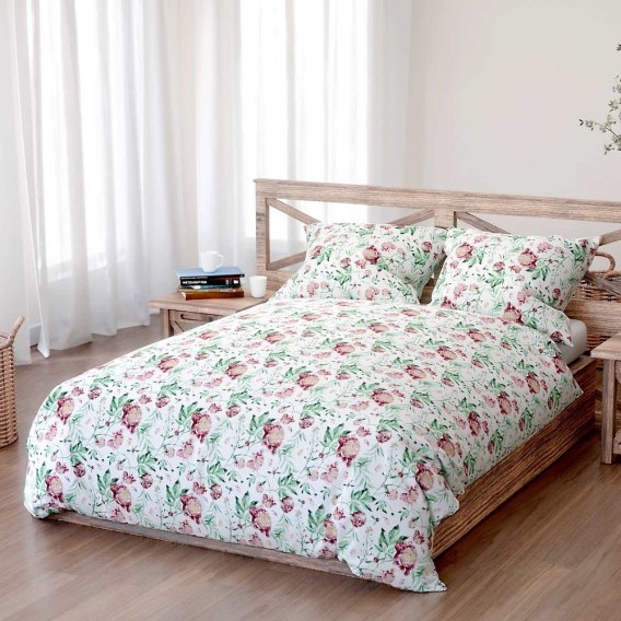 Pościel bawełniana 160x200 Peony light biała bordowa zielona peonie kwiaty Bawełna 3