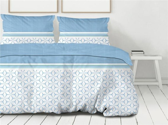 Pościel bawełniana 160x200 Sydney biała niebieska geometria Premium Bielbaw 1
