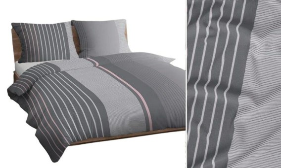 Pościel bawełniana 160x200 grafitowa szara jasna różowa paski 4744 A bawełna Max