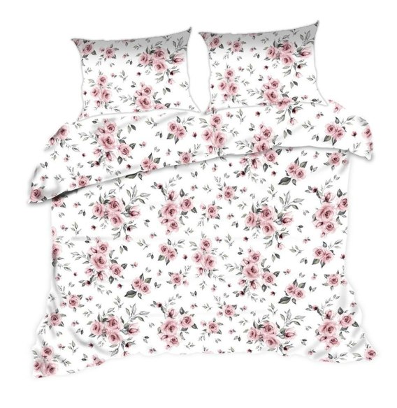 Pościel bawełniana 160x200 kwiaty biała różowa 1436N Classic