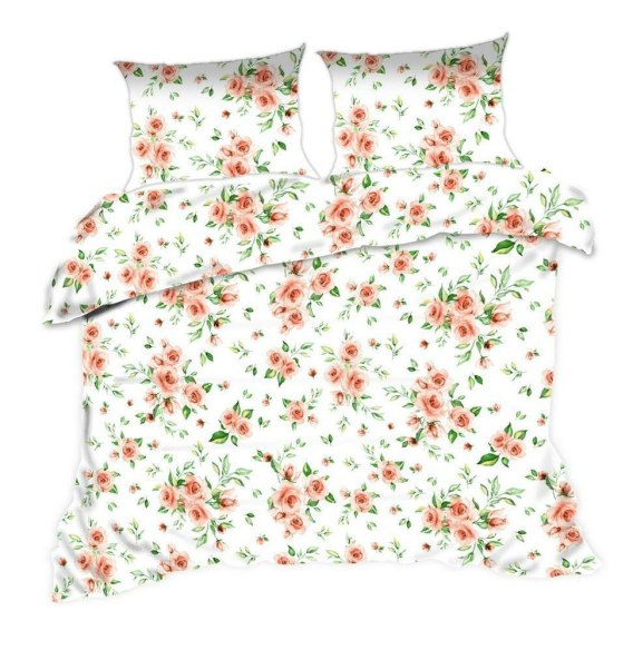 Pościel bawełniana 160x200 kwiaty biała zielona różowa 1438N Classic