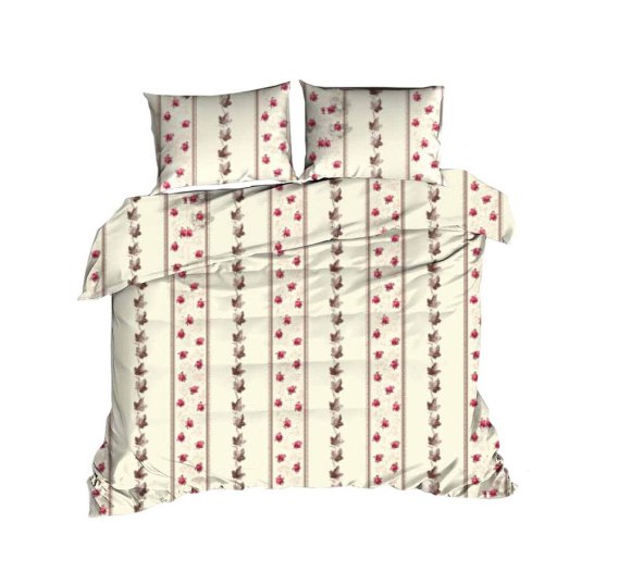 Pościel bawełniana 160x200 kwiaty kremowa czerwona 1602N Classic