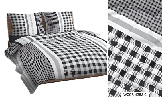 Pościel bawełniana 160x200 szara czarna krata 4292 C bawełna Max