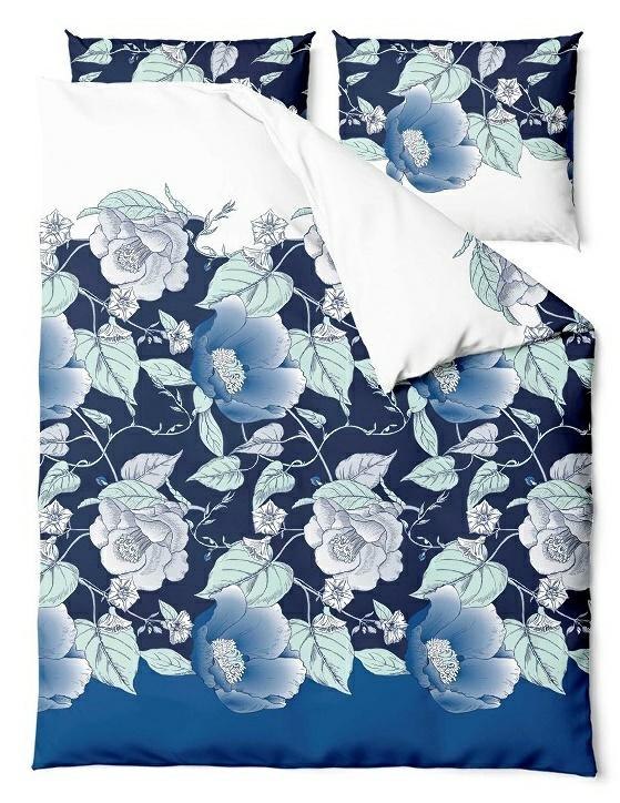 Pościel bawełniana 220x200 Peonies kwiaty peonie granatowa chabrowa biała bawełna 2