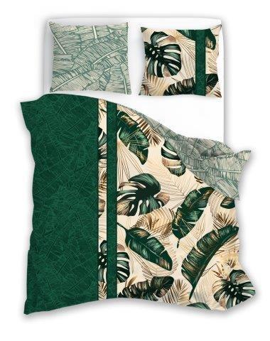 Pościel bawełniana 220x200 beżowa zielona liście monstera Letni sen 013 Faro