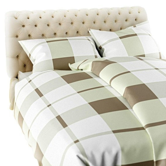Pościel flanelowa 140x200 Krata beżowa z jedną poszewką 70x80