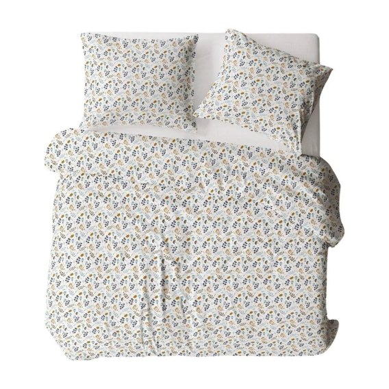 Pościel flanelowa 160x200 613N biała wielokolorowa kwiaty na guziki Flanela Komfort