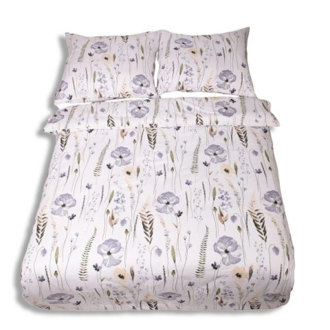 Pościel flanelowa 160x200 F-90 biała niebieska zielona kwiaty liście Matex