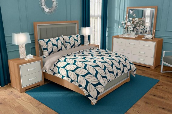 Pościel flanelowa 160x200 beżowa turkusowa ciemna liście dwustronna F006 Flanela 2022