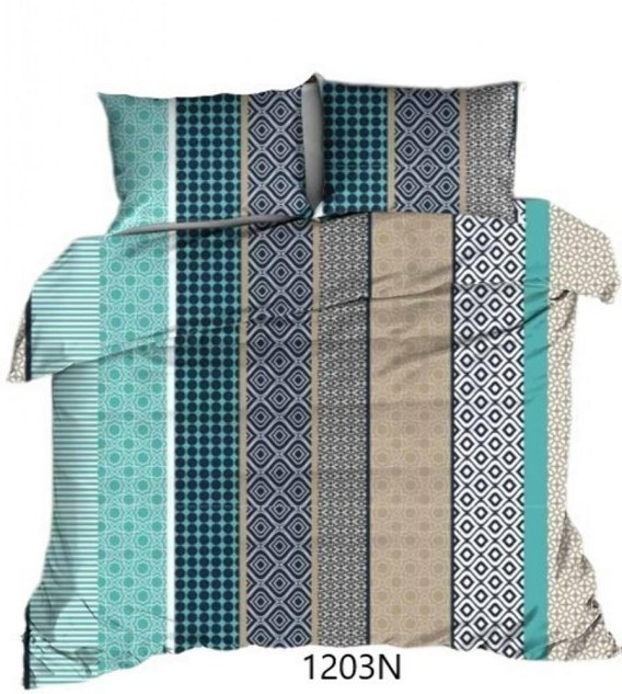 Pościel flanelowa 160x200 turkusowa miętowa pasy 1203 Flanela Max
