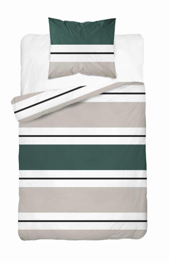 Pościel satynowa 140x200 5219 B biała zielona butelkowa beżowa paski z jedną poszewką Home Satin 59