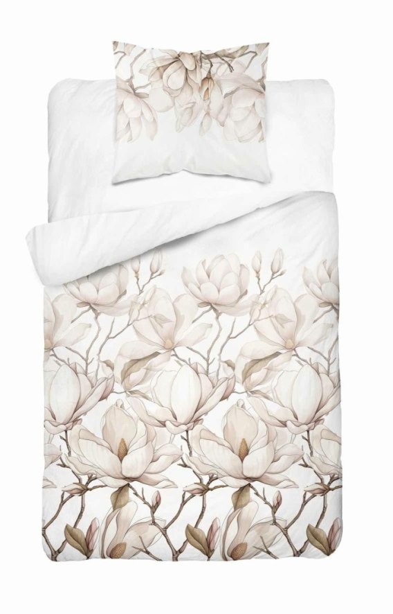 Pościel satynowa 140x200 5235 A biała kremowa beżowa jasna kwiaty z jedną poszewką Home Satin 59